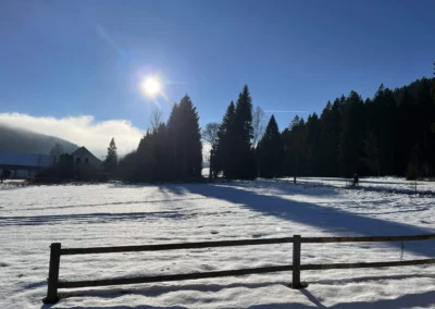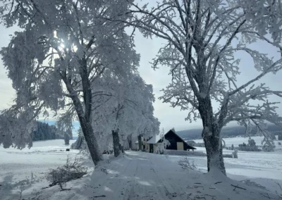 Upravované stopy směr Knížecí Pláně, Bučina nebo na druhou stranu Nové Hutě, Churáňov – nástup před chalupou