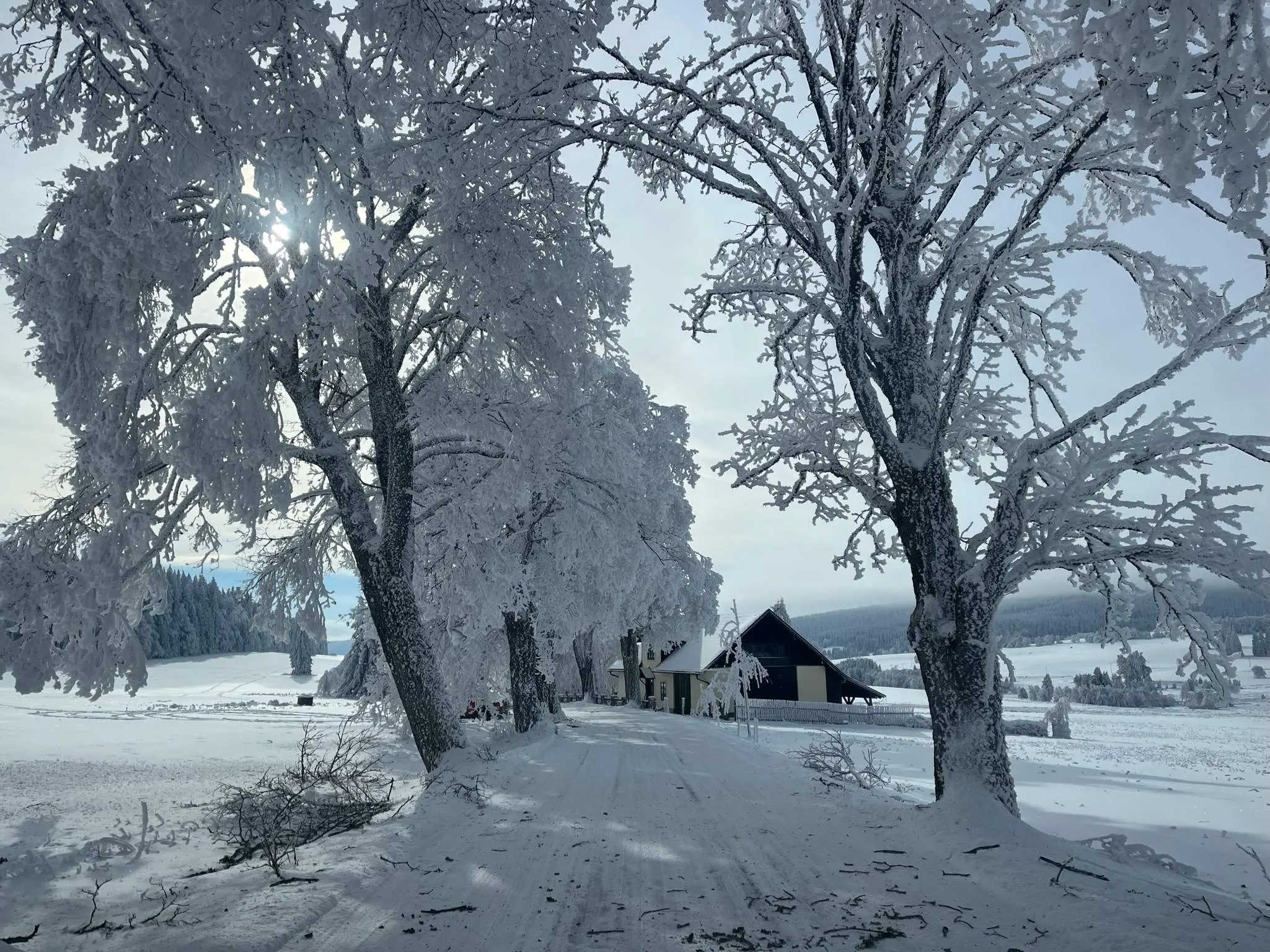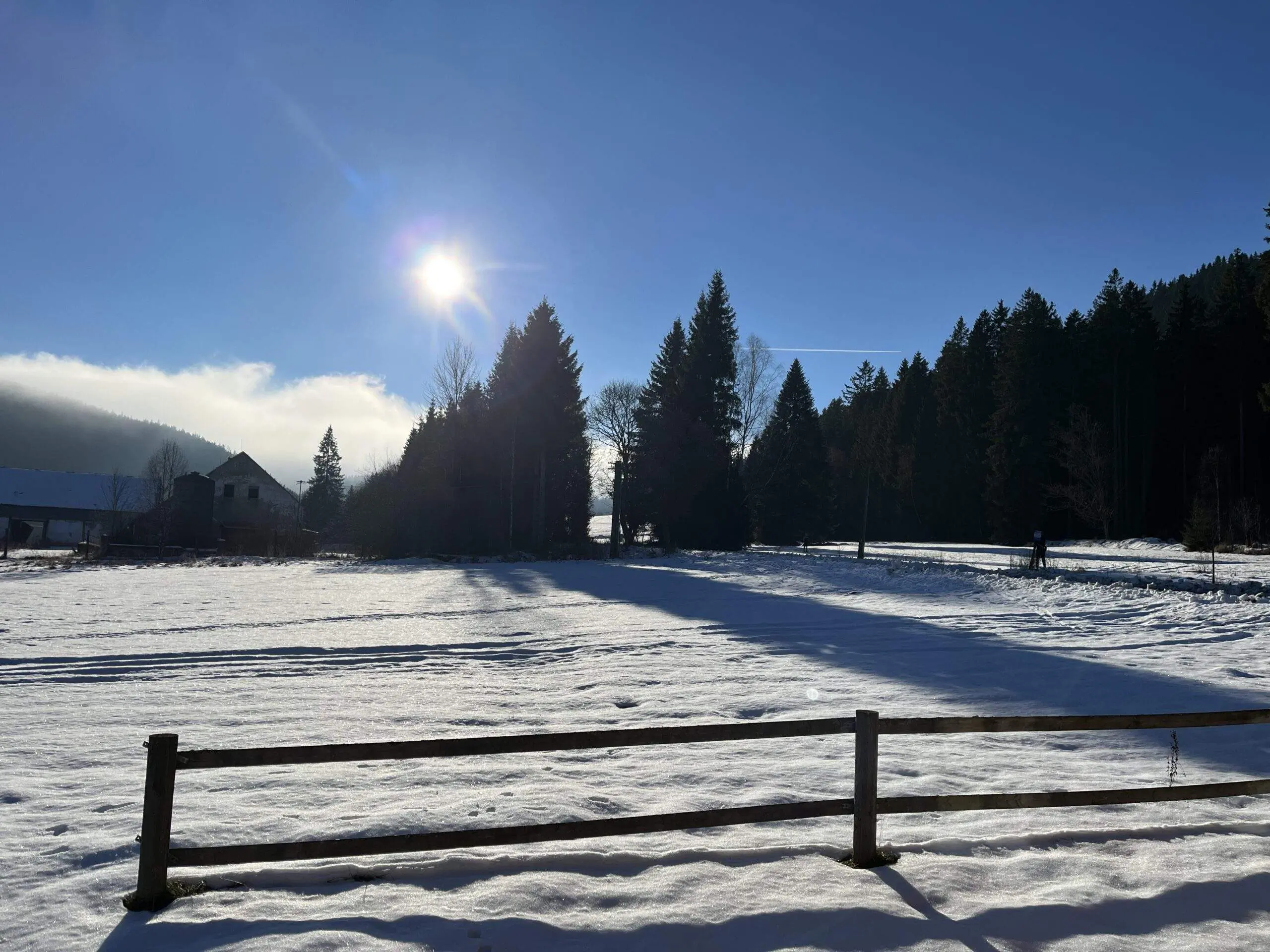Upravované stopy směr Knížecí Pláně, Bučina nebo na druhou stranu Nové Hutě, Churáňov – nástup před chalupou